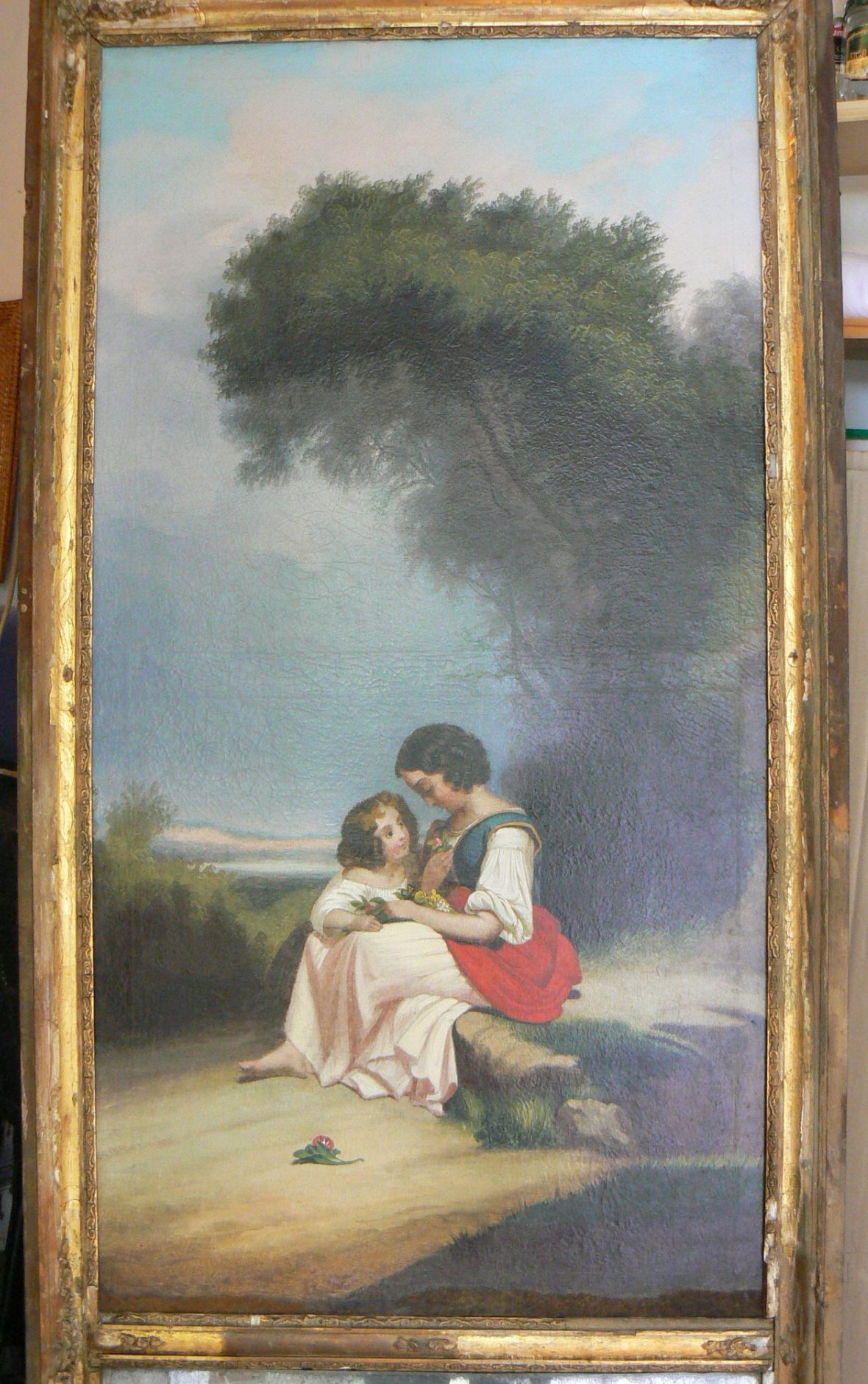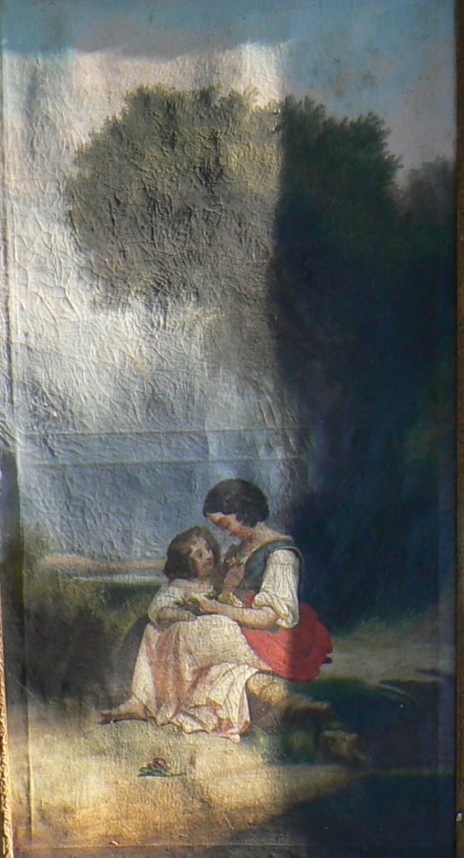 Trumeau : famille au pied d’un arbre. Huile sur toile, 98,5/53cm, XIX°s, anonyme.